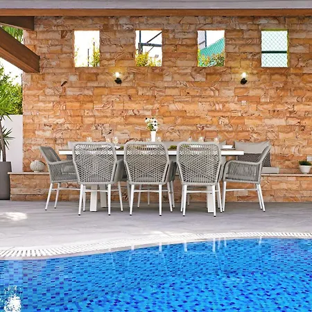 De gesitueerde in Protaras Villa Amy - 100M From Nisia Loumbardi Beach heeft een ingerichte keuken met een waterkoker, een koelkast en een oven. Ellinadiko Taverna Restaurant biedt Europese gerechten en ligt binnen een straal van 650 meter.
